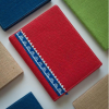 This file/folder is made by the artisans. The material used is handmade canvas and it comes with a magnetic button. It has a stripe of warli art on the cover which makes it elegant and artistic. It is durable due to the hardboard binding. It has two segments inside.
